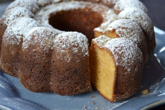 Préchauffez le four à 180°C et beurrez généreusement (et farinez) un moule couronne. Enfournez pour 35 minutes et démoulez lorsque le gâteau est froid.