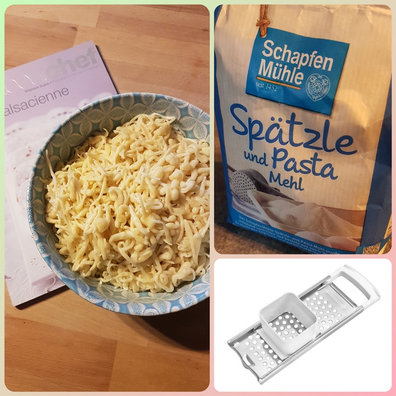 La pâte est très facile à réaliser mais confectionner les spätzles prend du temps… comptez au moins 2h de boulot… vous avez du temps devant vous non ?