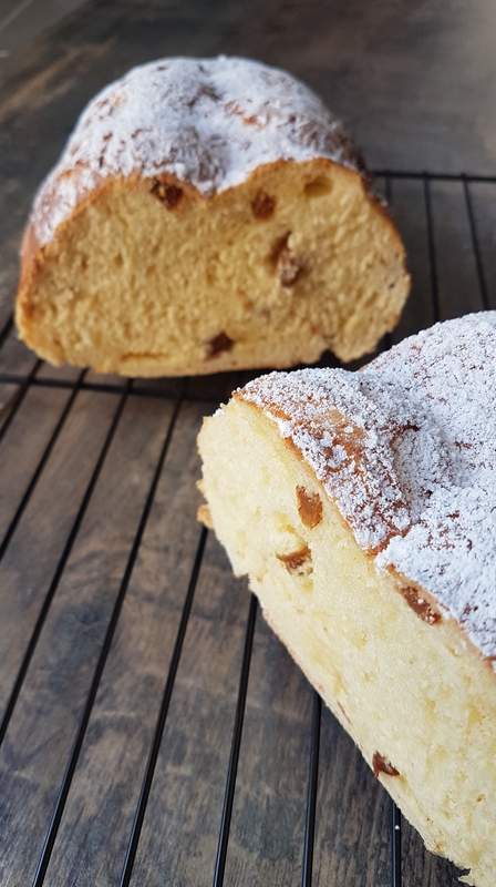 Préchauffez votre four à 180°C. Couvrez votre brioche de papier aluminium et placez au four pour 20 minutes. Enlevez le papier alu et faites dorer encore 10 minutes. Démoulez la brioche à la sortie du four et saupoudrez de sucre glace lorsqu’elle sera froide.