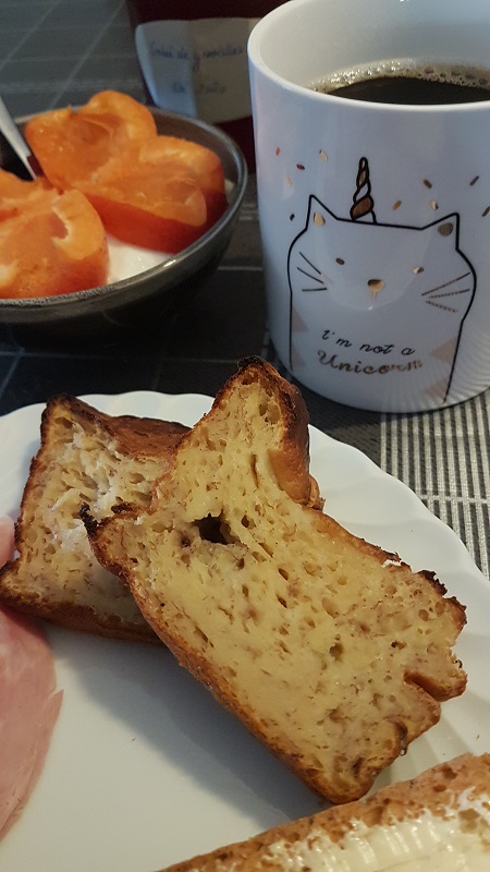 J’ai volontairement réduit le temps de cuisson du gâteau pour que la cuisson se termine au grille pain ! Le banana bread toasté vous permet d’avoir un petit déjeuner chaud, croustillant et moelleux à la fois, avec un petit goût caramélisé en plus ! L’intégralité du cake vaut 15 sp, ce qui vous permet de faire de belles tranches épaisses pour seulement 2 sp.