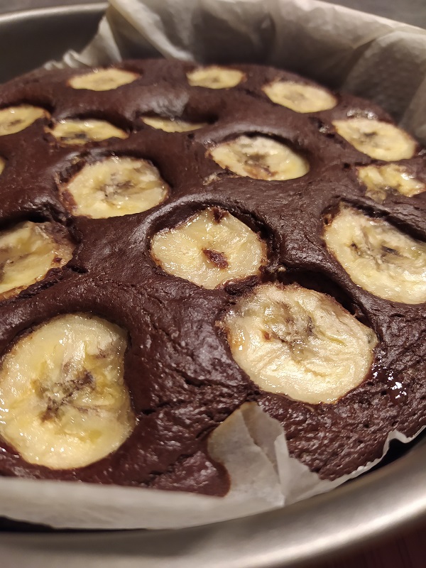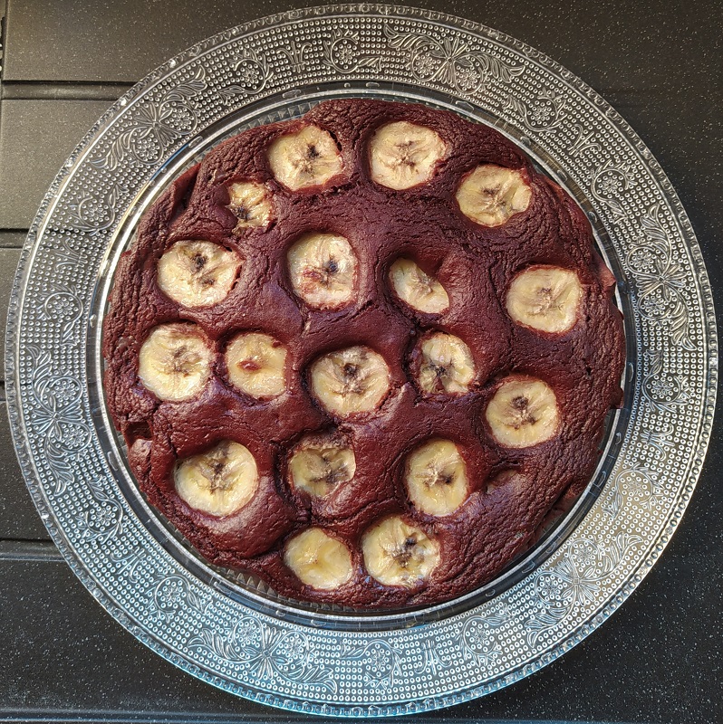 Dans un saladier, mélangez les œufs, l’édulcorant, la farine, la levure, le cacao, le café et le sel. Ajoutez la compote. Mélangez bien pour éviter toute présence de grumeaux. Coupez la banane en rondelles épaisses. Versez la préparation dans un moule à manqué de 24 cm, chemisé de papier sulfurisé. Égalisez le mélange et déposez, délicatement et de manière homogène, les rondelles de banane. Placez au four pour 25 minutes !